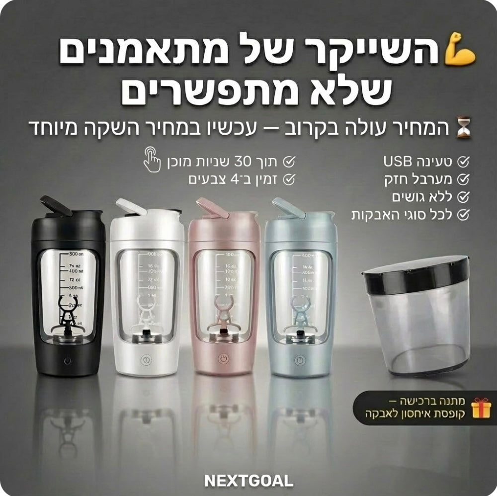 לאחר מחקר מעמיק, בדיקות שטח ופיתוח ממושך — יצרנו מוצר שמציב רף חדש. בניגוד למותגים אחרים, אצלנו העיקרון פשוט: איכות אמיתית, ביצועים גבוהים ונוחות מקסימלית. השייקר שלנו מספק חוויית שימוש חלקה, מהירה ואמינה בכל פעם מחדש, ומותאם במיוחד למי שלא מתפשר על איכות.